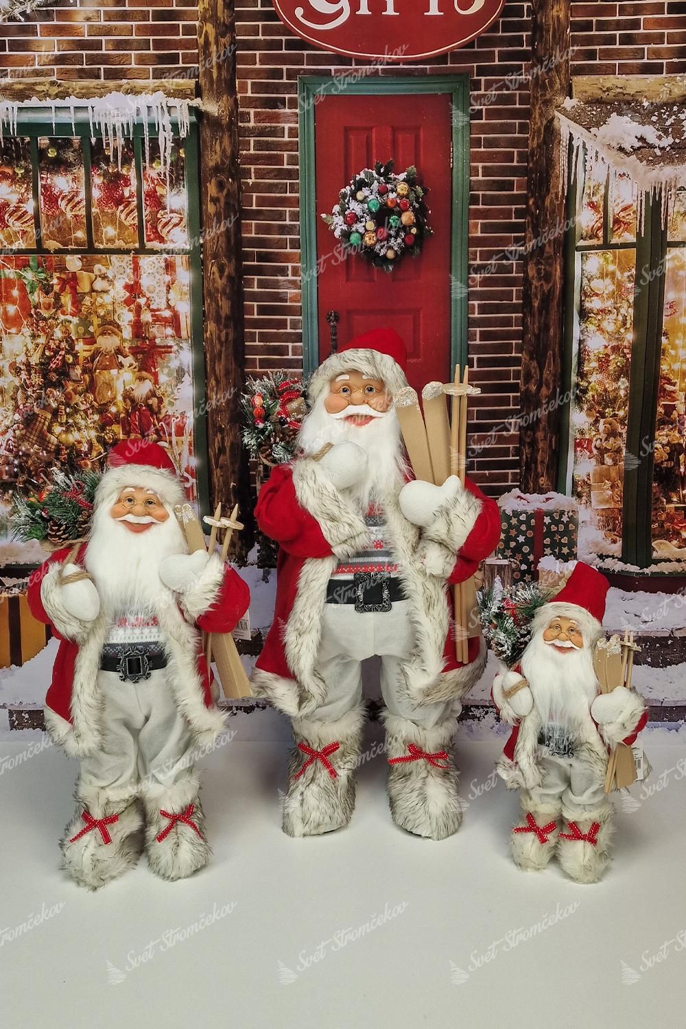 Tradičný červeno-biely vianočný Santa Claus je dostupný vo veľkostiach 40 cm, 60 cm a 80 cm.