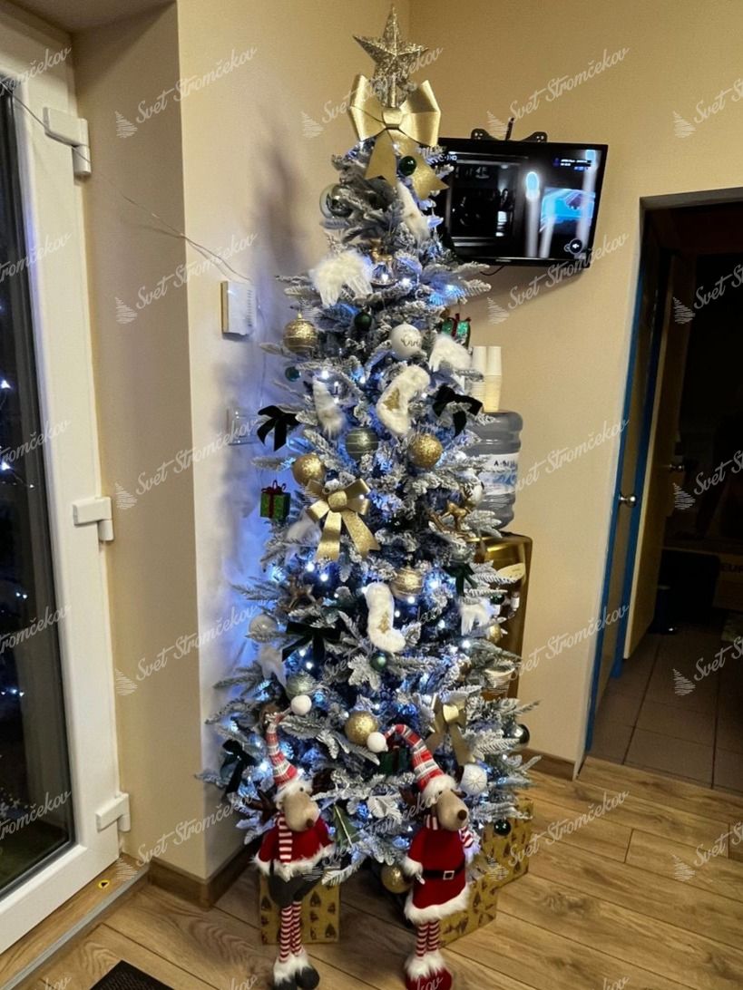 Novinka sezóny 2024, vianočný stromček 3D Jedľa Biela Štíhla je originálna svojimi husto zasneženými jedľovými vetvičkami. Realistický zasnežený vzhľad stromčeka vytvorí vo vašom domove čarovnú zasneženú atmosféru a vďaka úzkemu dizajnu je ideálnym riešením do menších priestorov.