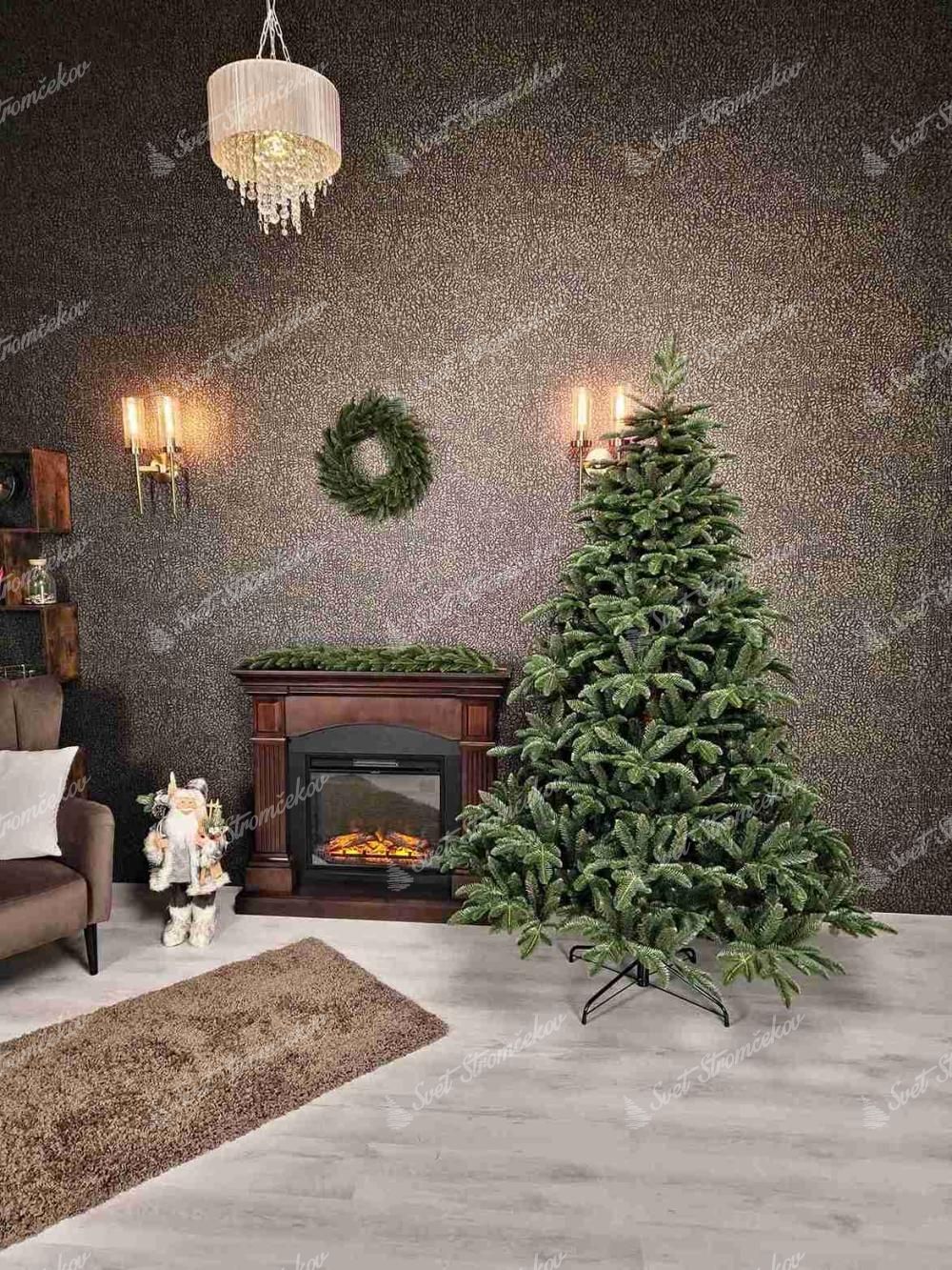 Stred stromčeka je detailne prepracovaný a má hnedú farbu, čo pôsobí  prirodzene a stromčeku pridáva na autentickosti. Extra široký stromček je vhodný najmä do väčších priestorov, kde zaručene vynikne.