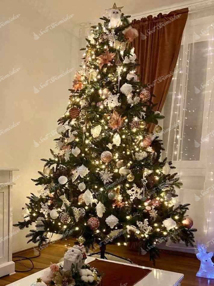 Stred stromčeka je detailne prepracovaný a má hnedú farbu, čo pôsobí prirodzene a stromčeku pridáva na autentickosti. Extra široký stromček je vhodný najmä do väčších priestorov, kde zaručene vynikne.