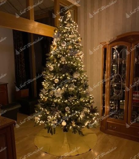 umelý vianočný stromček 3D, výška 240cm, šírka 150cm, typ ihličia 3D(PE) + PVC, jedľové 3D ihličie prirodzene zelenej farby, prevedenie – hustý, dĺžka špičky 20cm, kovový stojan, počet častí – 3