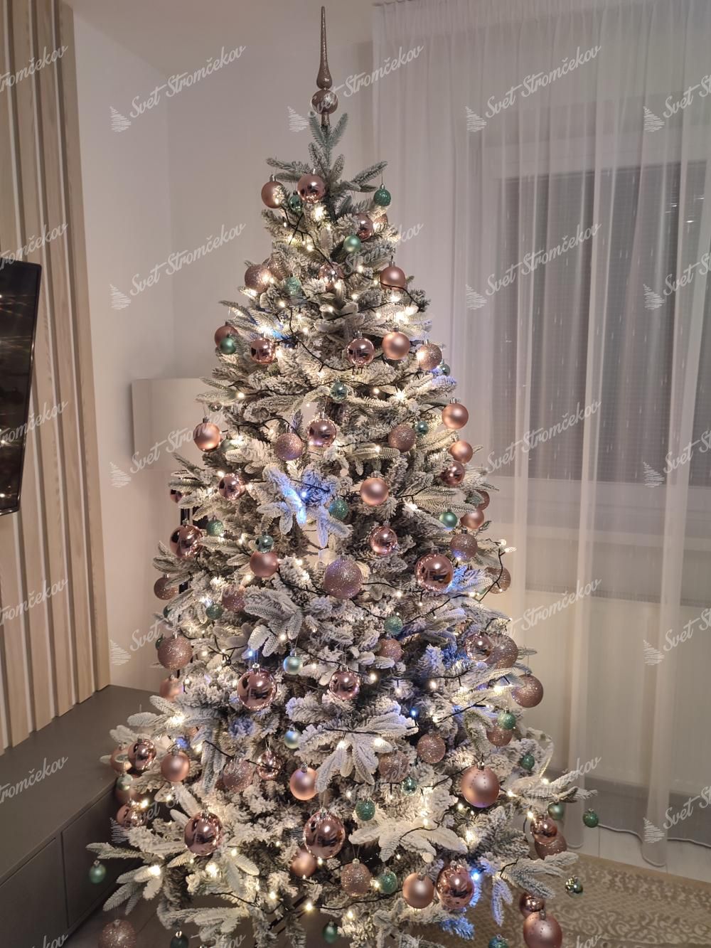 Na stromčeku je zabudované ( predmotané ) LED osvetlenie teplej bielej farby. Vďaka čomu už viac nemusíte strácať čas nekonečným vešaním osvetlenia na stromček. Počet LED svetielok záleží od veľkosti stromčeka.