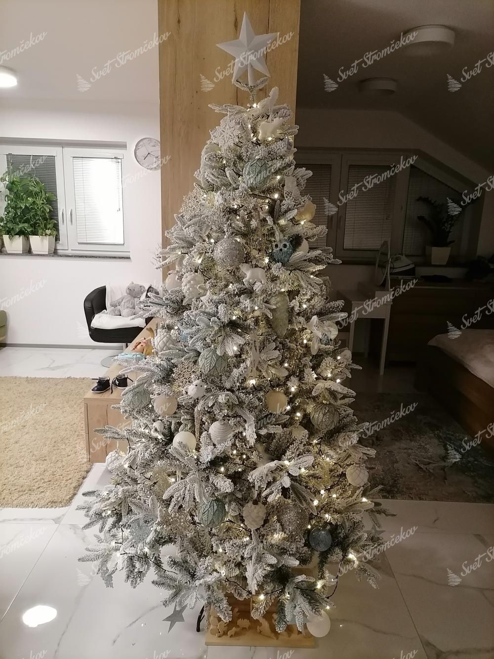 3D ihličie je po celom obvode stromčeka doplnené o klasické PVC ihličie, ktoré je husto zasnežené. S pomocou najnovších technológií sú postupne na celý stromček aplikované vrstvy umelého snehu, ktorý zo stromčeku neopadáva. Stred stromčeka pozostáva z tmavozeleného ihličia, pričom konce vetvičiek sú husto zasnežené. Pri prvotnom rozkladaní vetvičiek dochádza k uvoľneniu nezachytených častí snehu.
