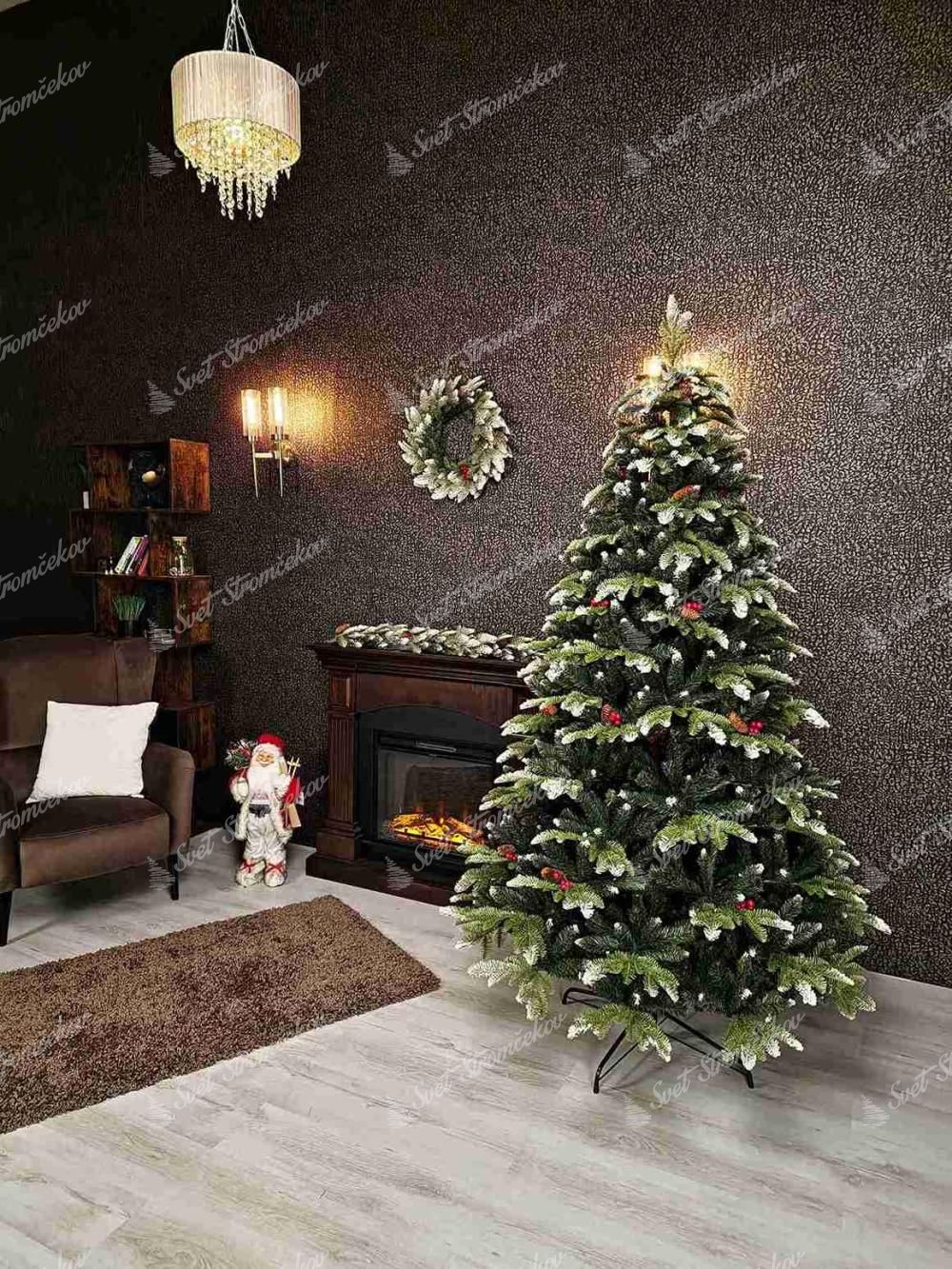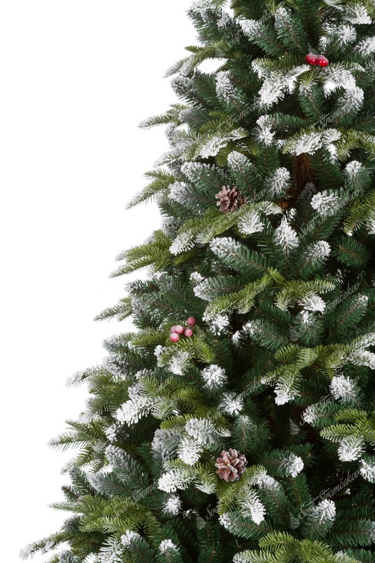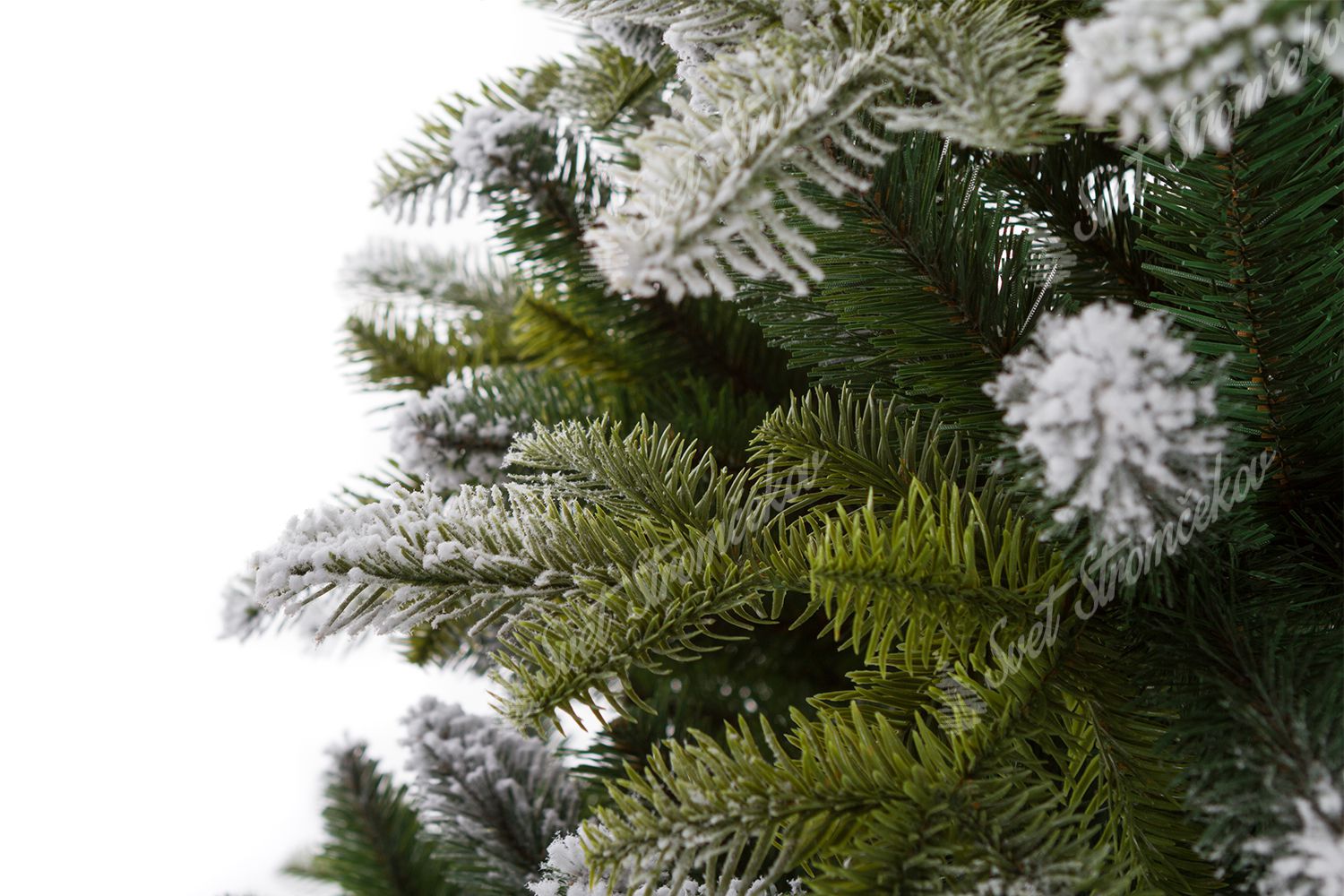 Umelý vianočný stromček 3D Jedľa Zasnežená sa vyznačuje sa husto zasneženými vetvičkami po okrajoch celého stromčeka. 3D ihličie je doplnené aj zasneženými šiškami a lesnými plodmi, vďaka ktorým má stromček nádherný tradičný vzhľad. Okrem 3d ihličia je stromček doplnený klasickým PVC ihličím, ktoré je taktiež na koncoch vetvičiek zasnežené, čím dokonalo imituje živý zasnežený stromček.