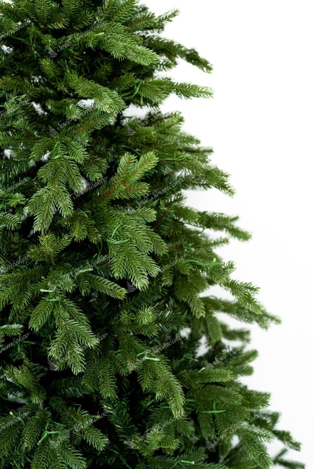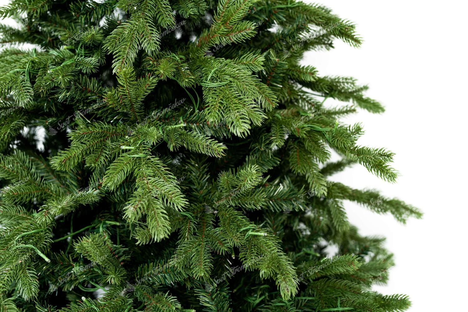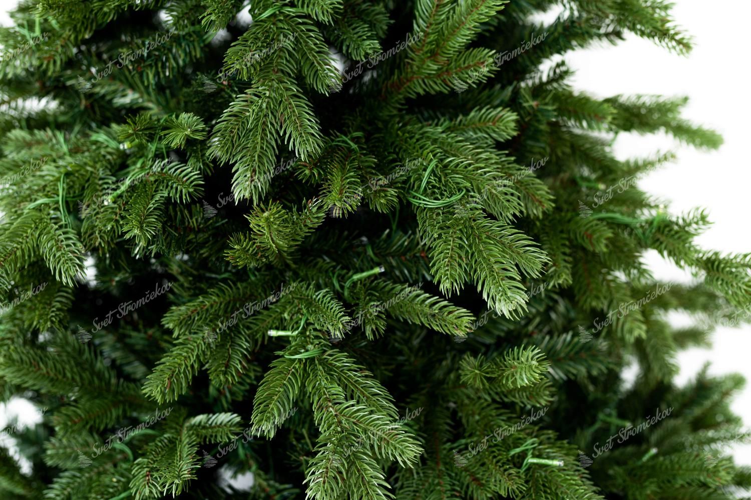 Po obvode stromčeka sú kombinované väčšie a menšie tmavozelené 3D vetvičky. Stromček sa vyznačuje veľkým počtom vetvičiek. Okrem 3D vetvičiek je vnútro stromčeka vyplnené klasickými PVC vetvičkami, čo zabezpečí hustý vzhľad. Jedinečný vzhľad 3D vetvičiek a ich kombinácia a rozloženie robí tento stromček naozaj exkluzívnym.