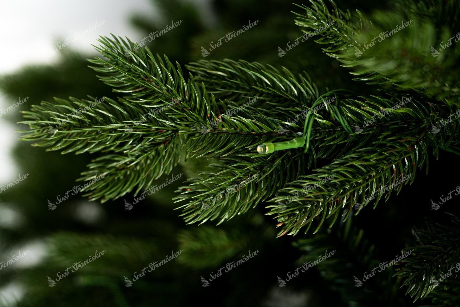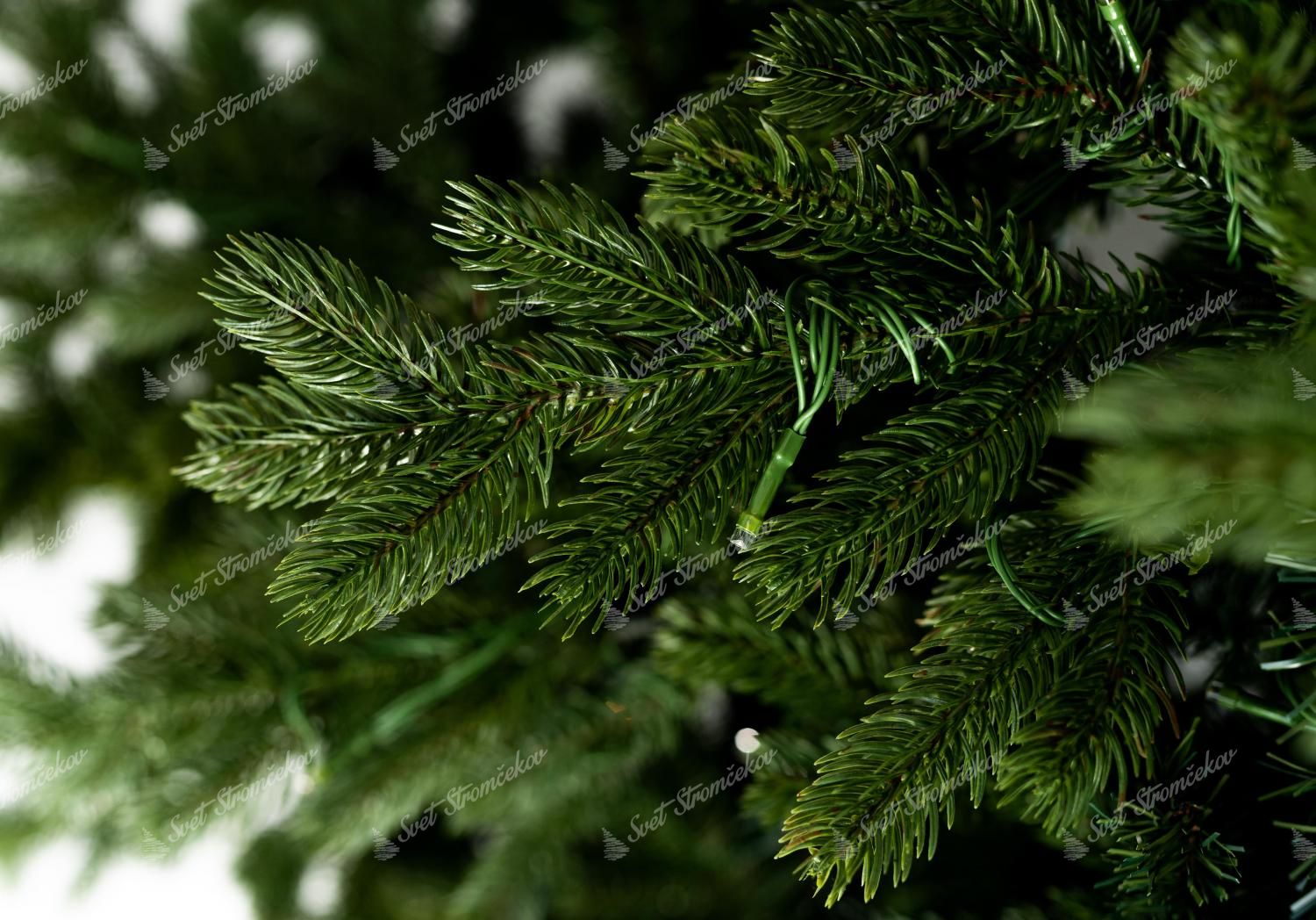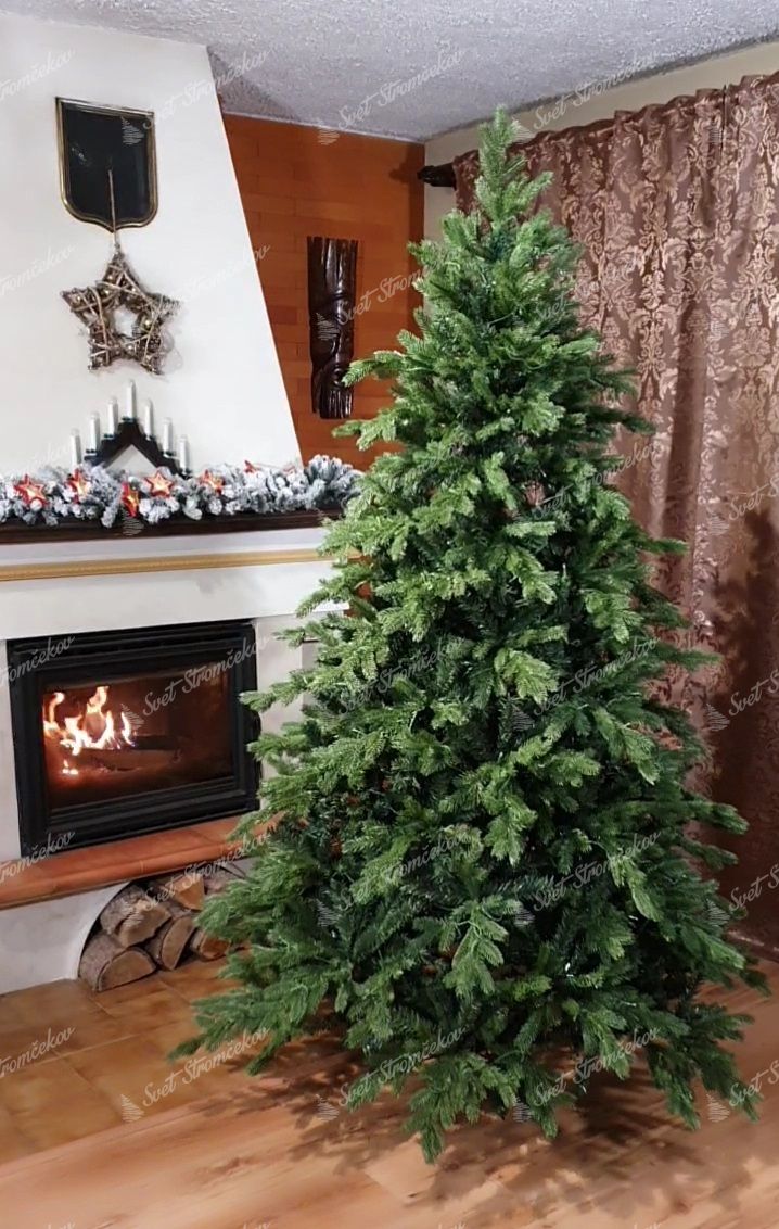 Po obvode stromčeka sú kombinované väčšie a menšie tmavozelené 3D vetvičky. Stromček sa vyznačuje veľkým počtom vetvičiek. Okrem 3D vetvičiek je vnútro stromčeka vyplnené klasickými PVC vetvičkami, čo zabezpečí hustý vzhľad. Jedinečný vzhľad 3D vetvičiek a ich kombinácia a rozloženie robí tento stromček naozaj exkluzívnym.