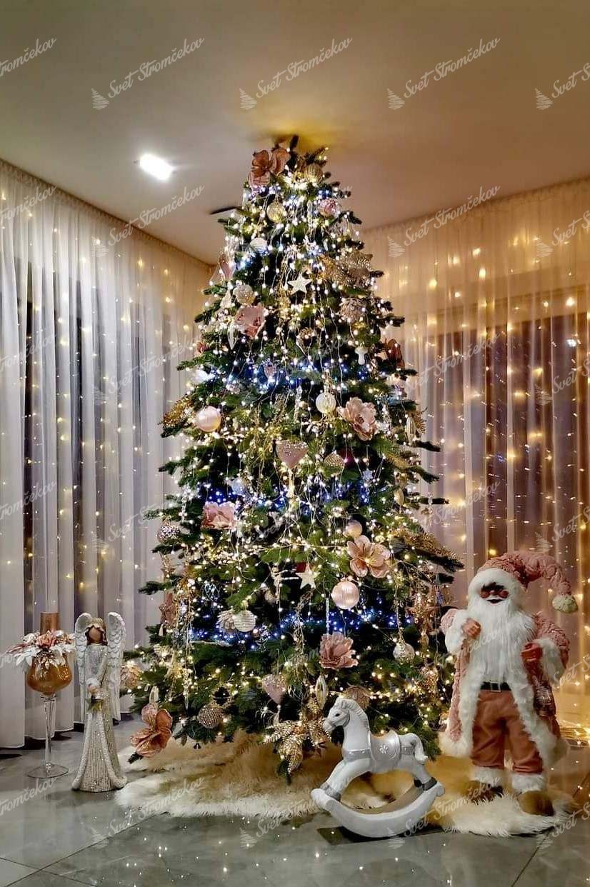 Na stromčeku je zabudované ( predmotané ) LED osvetlenie teplej bielej farby. Vďaka tomu viac nemusíte strácať čas nekonečným vešaním vlastného osvetlenia na stromček. Počet LED svetielok záleží od veľkosti stromčeka.