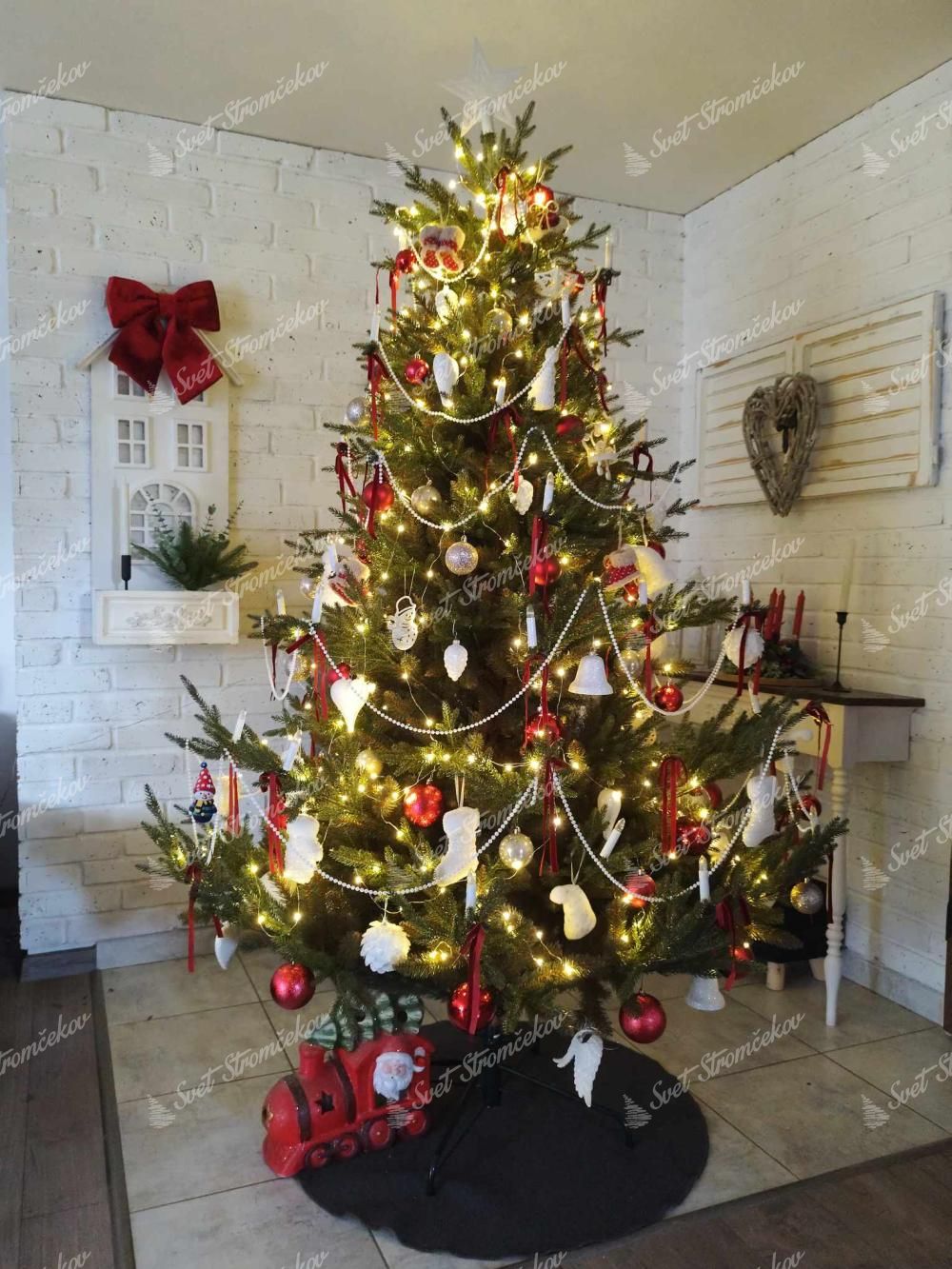 Stromček má dáždnikový systém rozkladania, ktorý zaručí dokonalý tvar stromčeka a súčasťou balenia je kovový stojan.