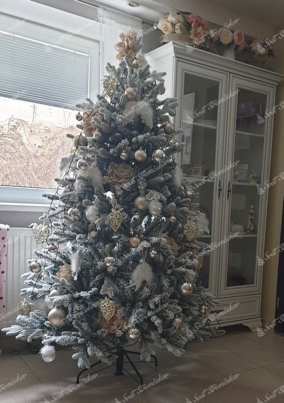 3D ihličie po celom obvode stromčeka je doplnené o klasické PVC ihličie, ktoré je husto zasnežené . Najmodernejší systém aplikovania umelého snehu na stromček zaručuje, že sneh neopadáva. Stromček ma pevnú železnú konštrukciu a stabilný kovový stojan, ktorý je súčasťou balenia.
