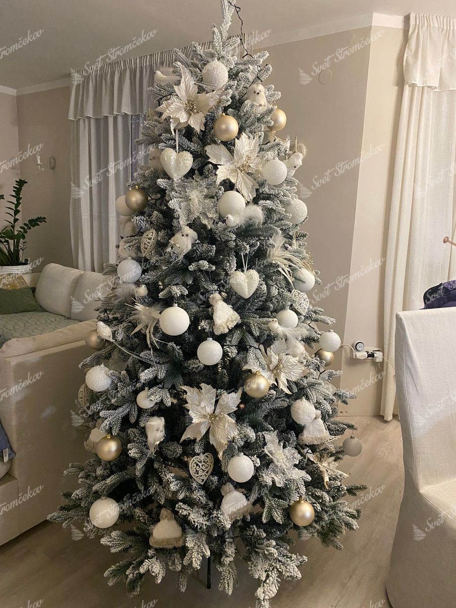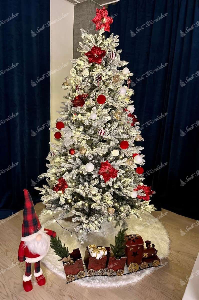 3D ihličie po celom obvode stromčeka je doplnené o klasické PVC ihličie, ktoré je husto zasnežené . Najmodernejší systém aplikovania umelého snehu na stromček zaručuje, že sneh neopadáva. Stromček ma pevnú železnú konštrukciu a stabilný kovový stojan, ktorý je súčasťou balenia.