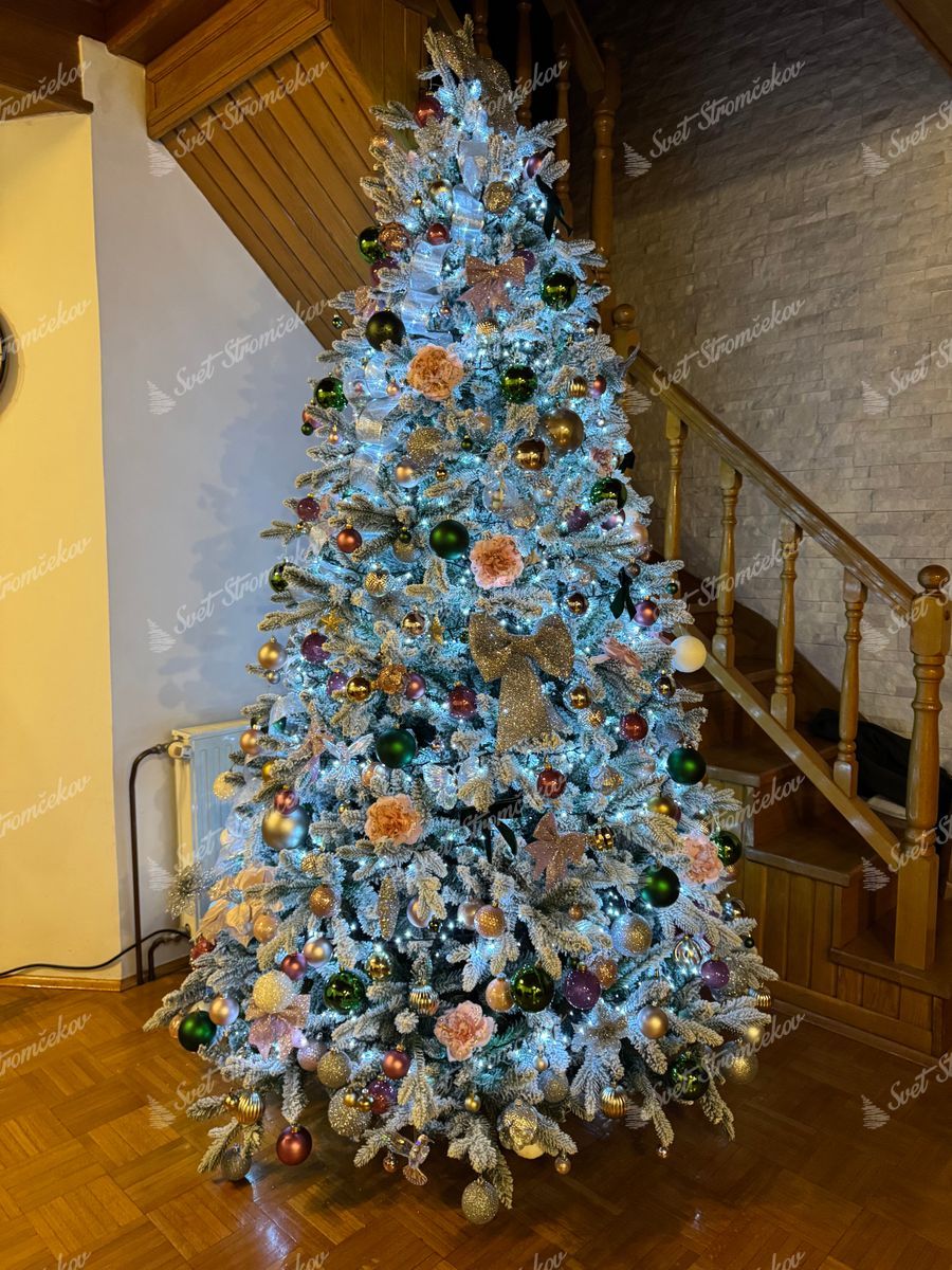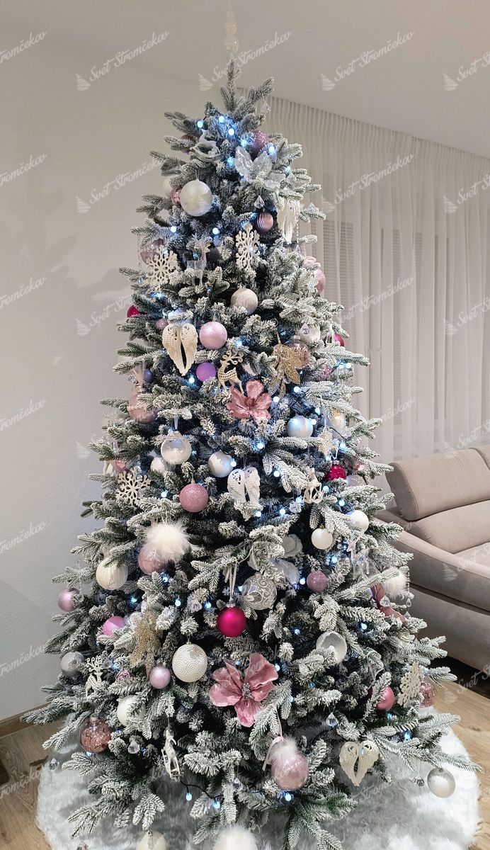 3D ihličie po celom obvode stromčeka je doplnené o klasické PVC ihličie, ktoré je husto zasnežené . Najmodernejší systém aplikovania umelého snehu na stromček zaručuje, že sneh neopadáva. Stromček ma pevnú železnú konštrukciu a stabilný kovový stojan, ktorý je súčasťou balenia.