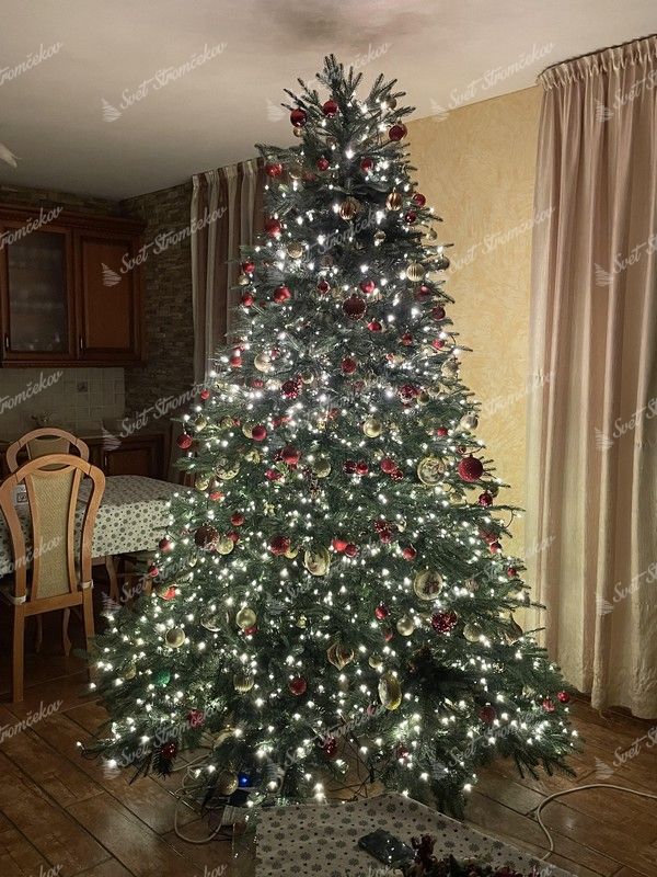 Na stromčeku je zabudované ( predmotané ) LED osvetlenie teplej bielej farby. Vďaka čomu už viac nemusíte strácať čas nekonečným vešaním osvetlenia na stromček. Počet LED svetielok záleží od veľkosti stromčeka.