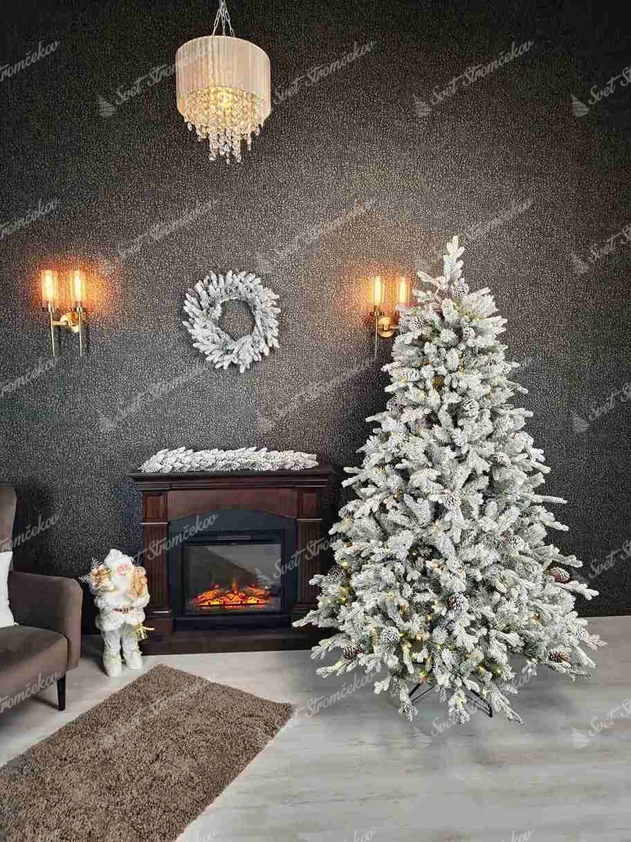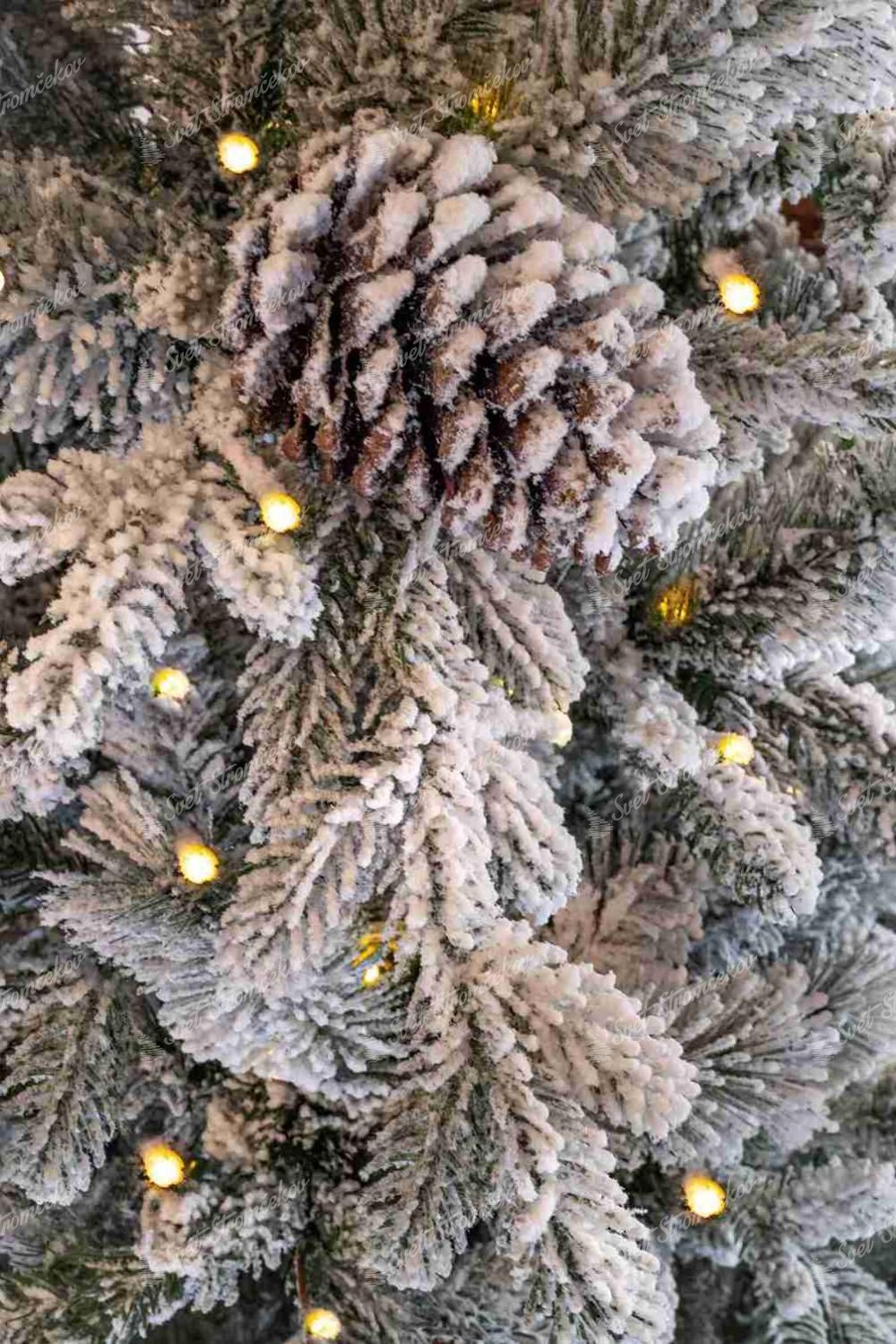 Originálny vzhľad dodávajú stromčeku aj husto zasnežené šišky, ktoré sú umiestnené na stromčeku. Stromček ma pevnú železnú konštrukciu a stabilný kovový stojan, ktorý je súčasťou balenia.