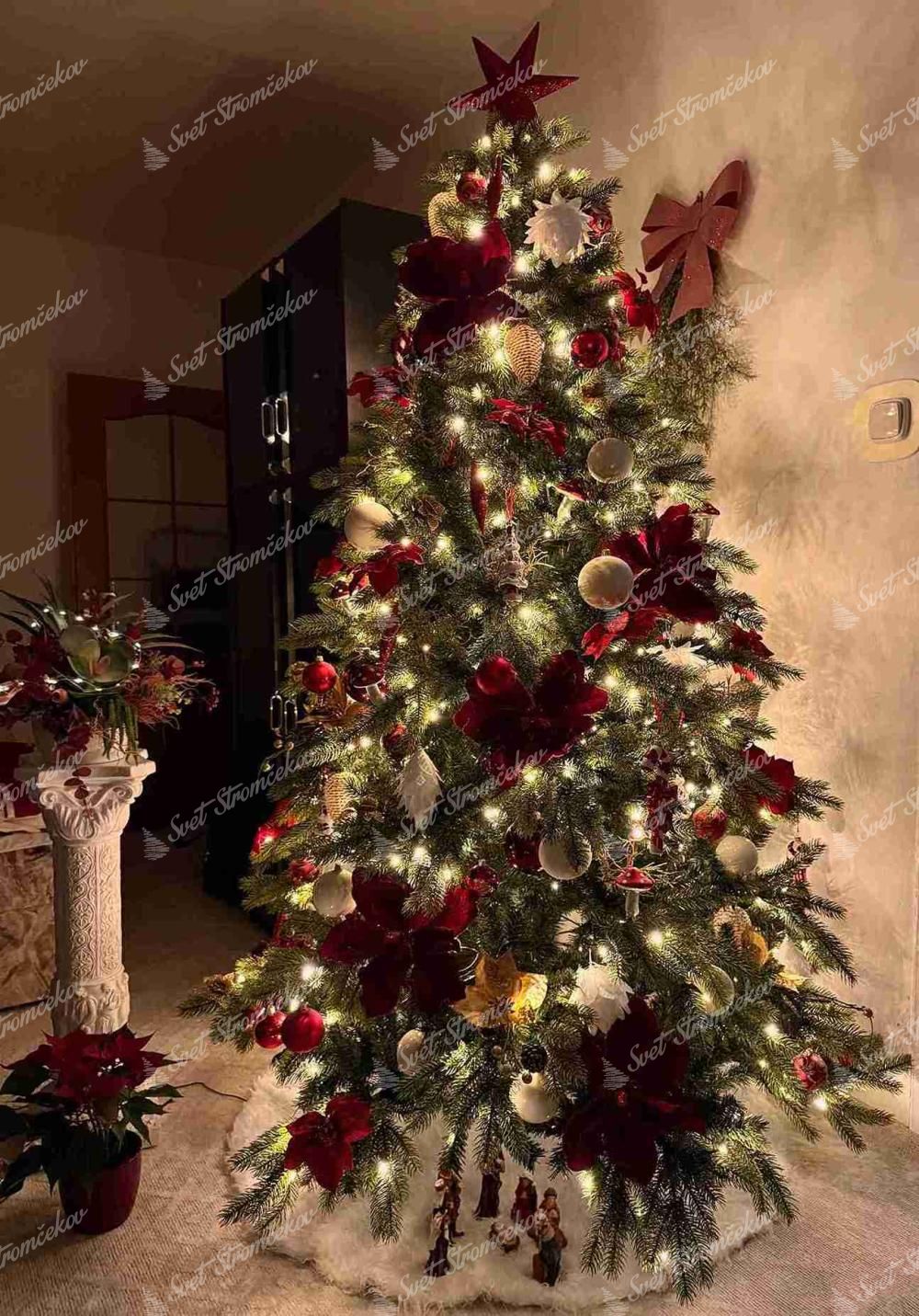 - stromček je v strede doplnený o klasické zelené PVC vetvičky pre dosiahnutie dokonale hustého vzhľadu