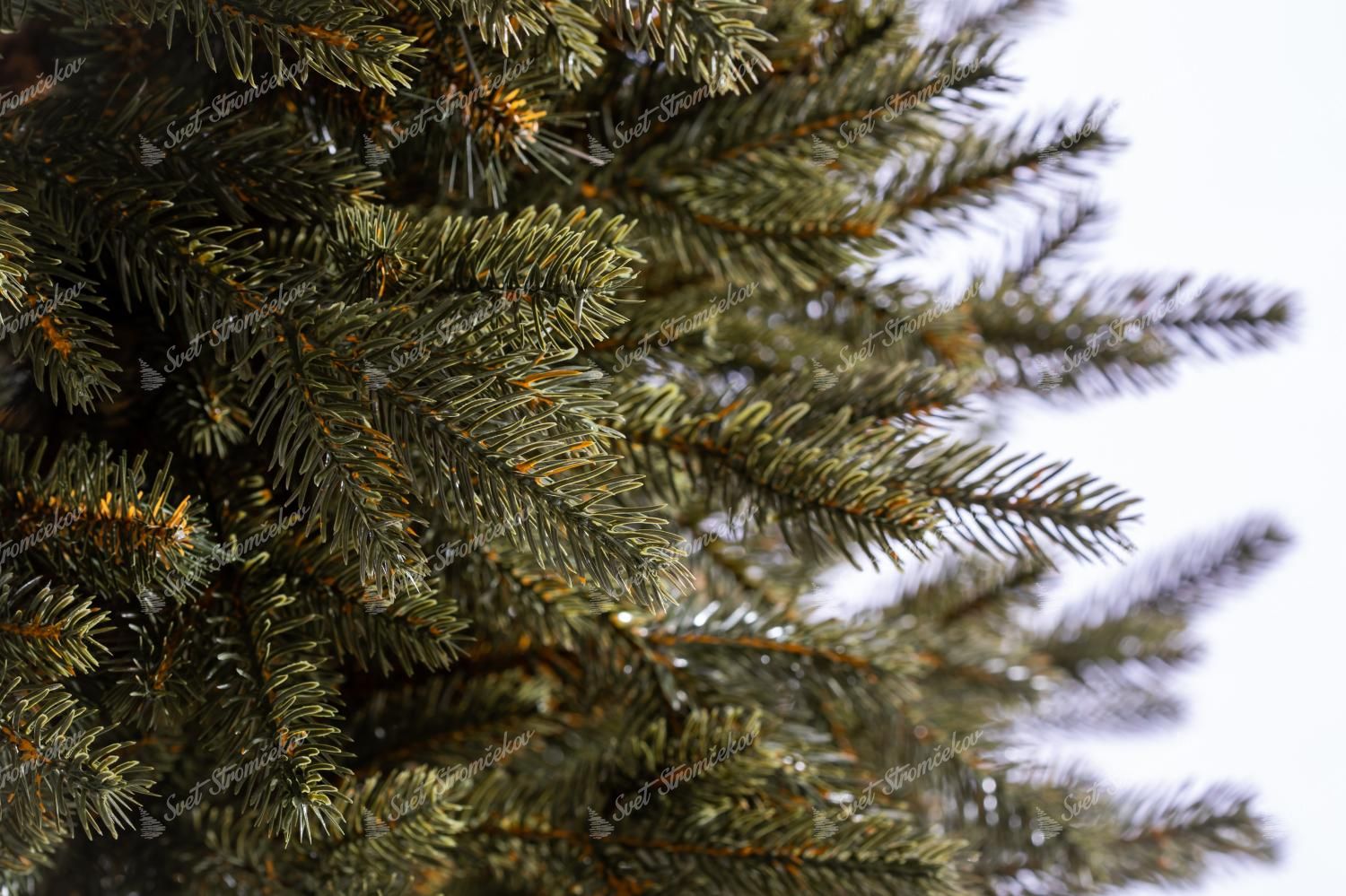 Šírku každého stromčeka nájdete dole nižšie v parametroch stromčeka. Realisticky vyzerajúce 3D vetvičky sú v strede stromčeka doplnené klasickými PVC vetvičkami, čo zabezpečuje hustotu stromčeka. Celý stromček je vyrobený z kvalitných materiálov.