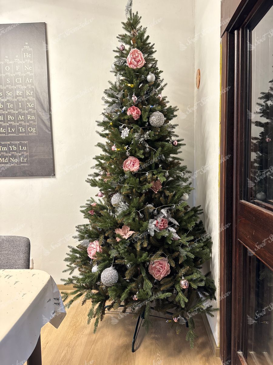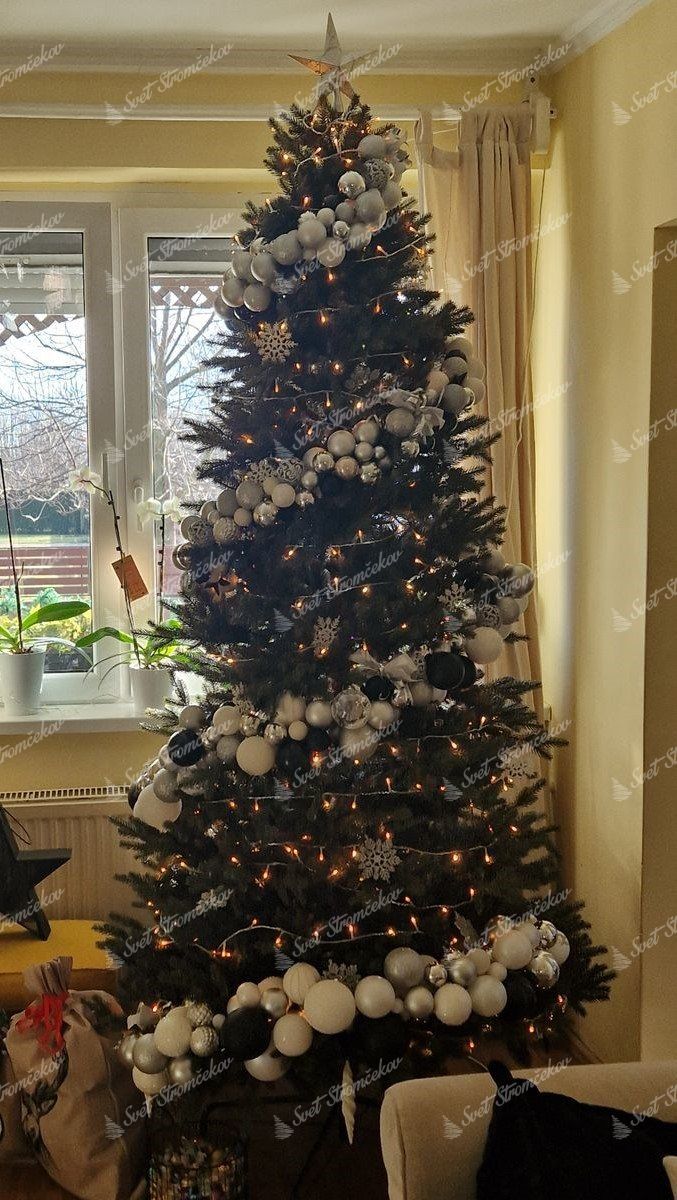 Šírku každého stromčeka nájdete dole nižšie v parametroch stromčeka. Realisticky vyzerajúce 3D vetvičky sú v strede stromčeka doplnené klasickými PVC vetvičkami, čo zabezpečuje hustotu stromčeka. Celý stromček je vyrobený z kvalitných materiálov.