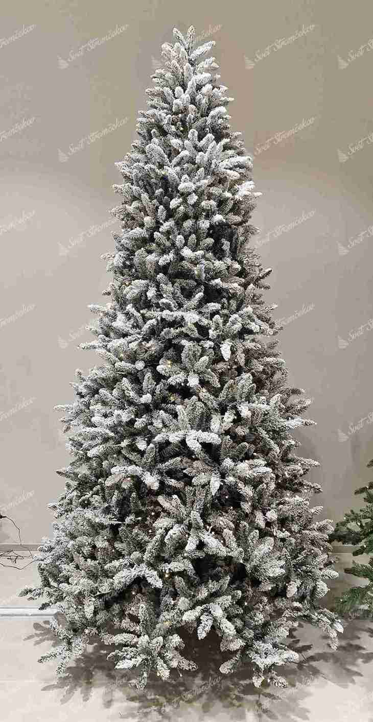 biely vianočný stromček, výška 300cm, šírka 152cm, husto zasnežené ihličie, typ ihličia 3D(PE) + PVC, prevedenie – hustý, dĺžka špičky cca 20cm, počet časti – 2