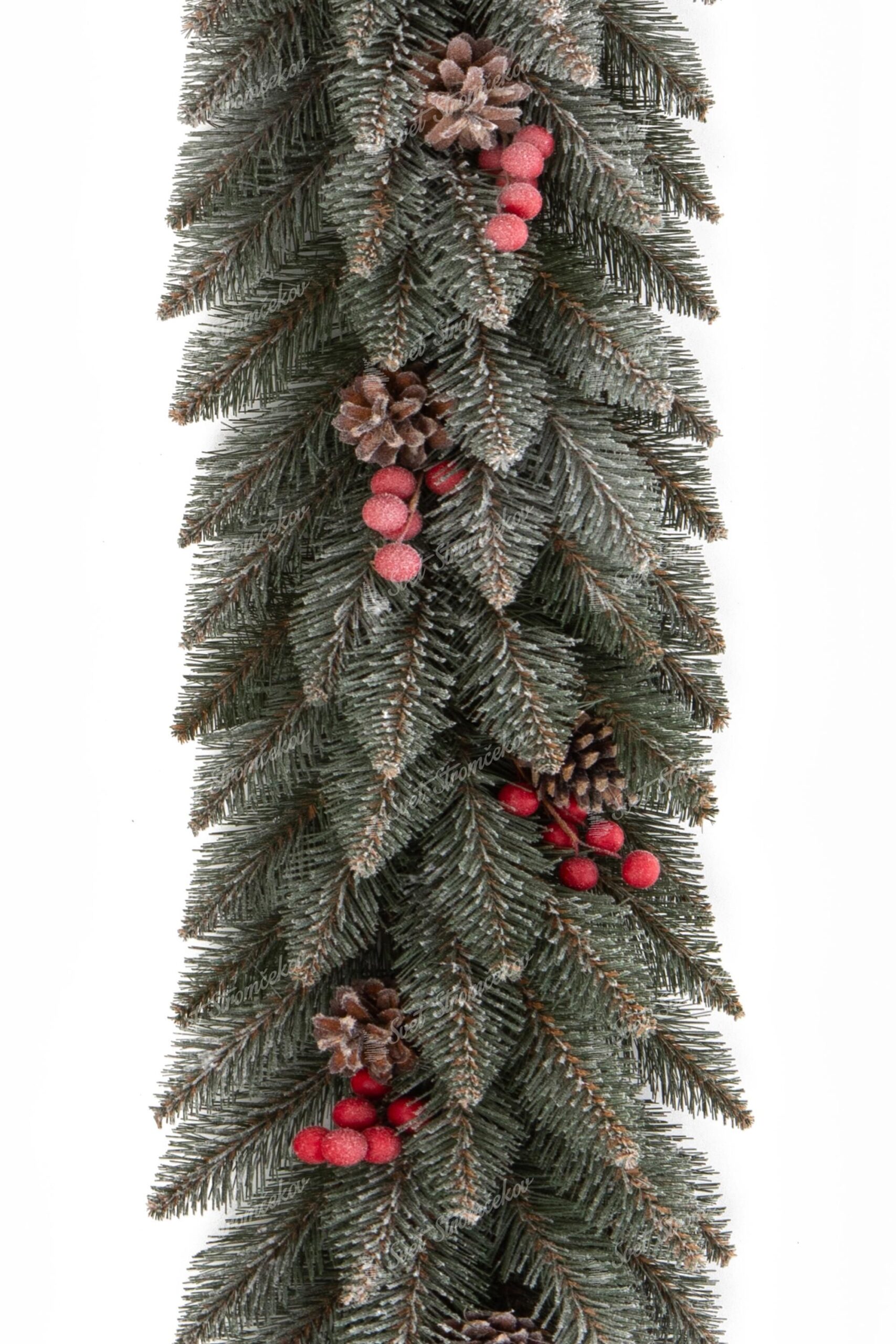 Táto exkluzívna vianočná girlanda tyrkysovo-zelenej farby je posiata bielymi chumáčikmi, ktoré pripomínajú kryštáliky ľadu. Vianočná girlanda meria 1m a je napojiteľná, takže podľa potreby môžete spojiť aj 3 kusy dokopy. Takáto vianočná girlanda je vhodná ako dekorácia na stôl, skriňu či dvere.