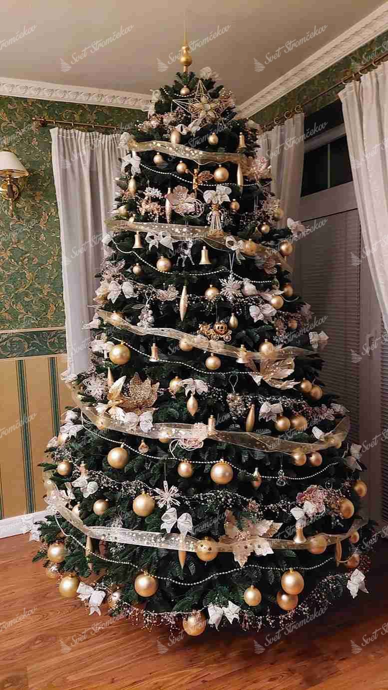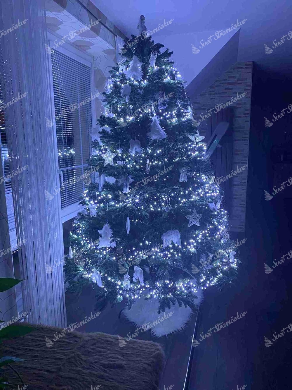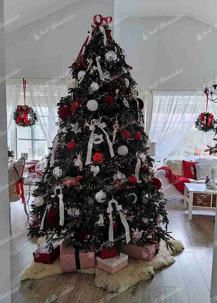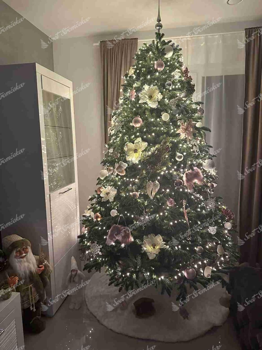 Stromček je v strede zahustený klasickými PVC vetvičkami, vďaka čomu má bohatý a objemný vzhľad. Tento exkluzívny stromček sa radí do kategórie nadrozmerných XL stromčekov, pre svoj mohutný vzhľad a väčší rozmer. Stromček je do klasických typov stromčekov širší o 15 až 25cm.