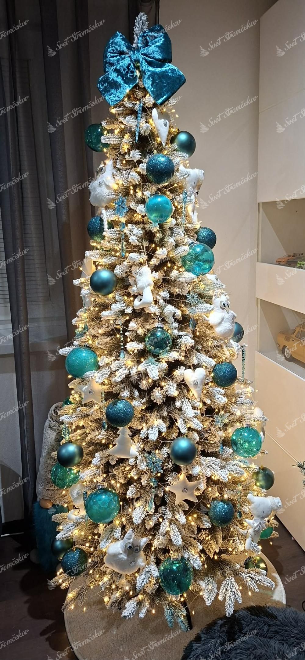 Jeho bielo-zelenkasté vetvičky očaria snáď každého, kto túži po kráľovsky ľadových Vianociach. 3D ihličie po celom obvode stromčeka je doplnené o klasické PVC ihličie, ktoré je husto zasnežené . Najmodernejší systém aplikovania umelého snehu na stromček zaručuje, že sneh neopadáva.