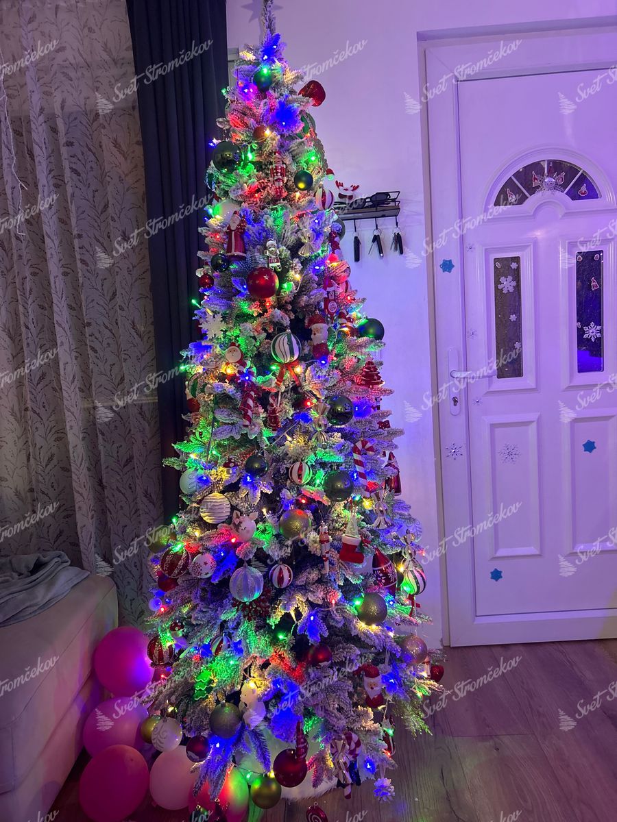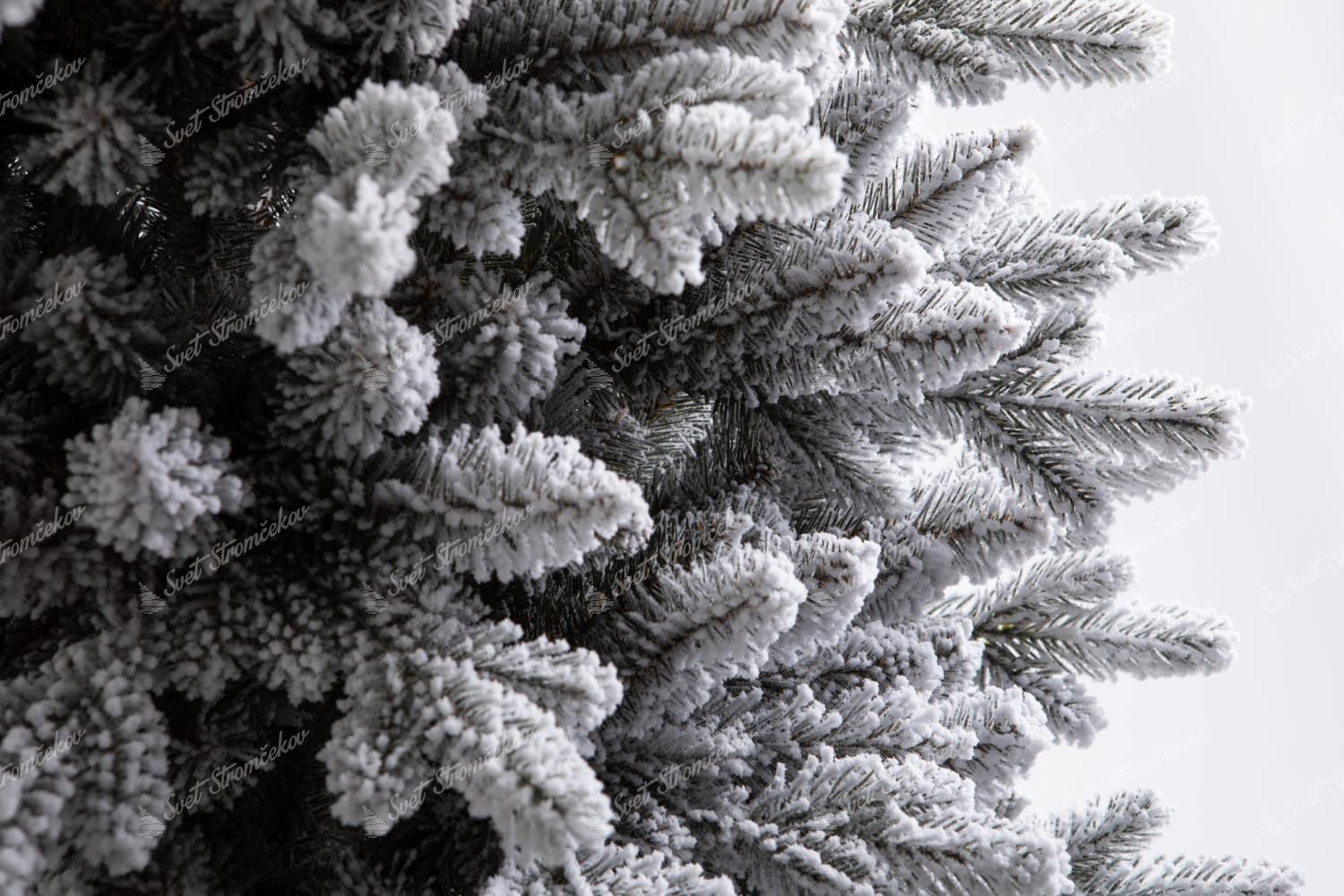 Jeho bielo-zelenkasté vetvičky očaria snáď každého, kto túži po kráľovsky ľadových Vianociach. 3D ihličie po celom obvode stromčeka je doplnené o klasické PVC ihličie, ktoré je husto zasnežené . Najmodernejší systém aplikovania umelého snehu na stromček zaručuje, že sneh neopadáva.
