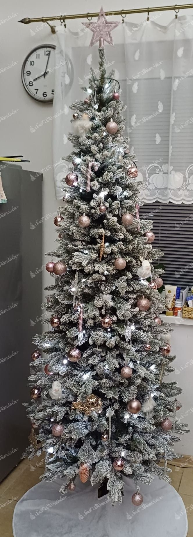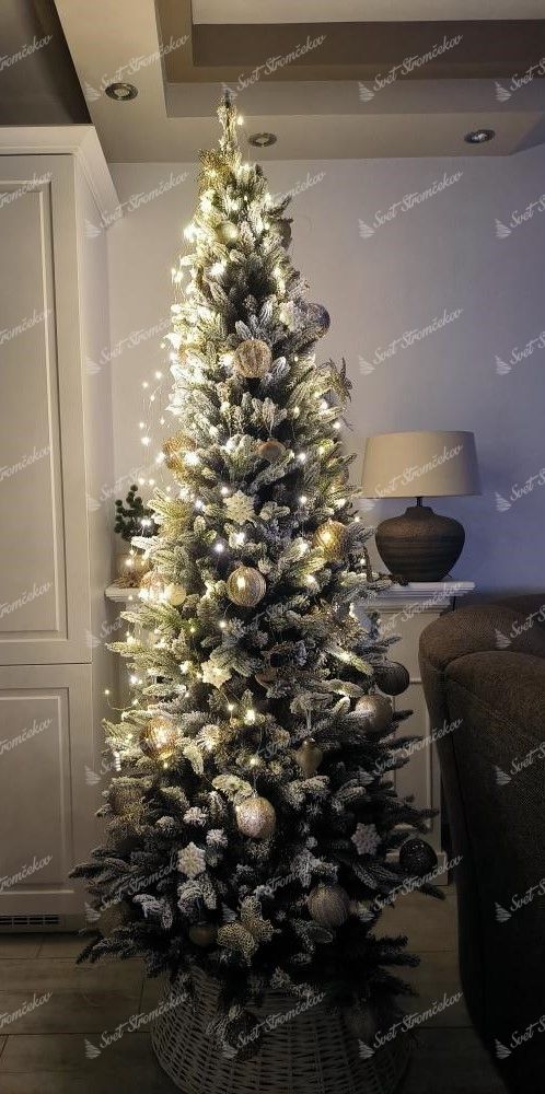 Štýlový vianočný stromček, 3D Smrek Kráľovský Štíhly, je užšou verziou jedného z našich najobľúbenejších zasnežených vianočných stromčekov – 3D Smreka Kráľovského. Tento úzky, zasnežený 3D stromček má jedinečný ľadový vzhľad a tvar dokonalého ihlana. Môžete ho použiť na vianočnú výzdobu stiesnenejších priestorov, práve je pre jeho úzke rozmery.