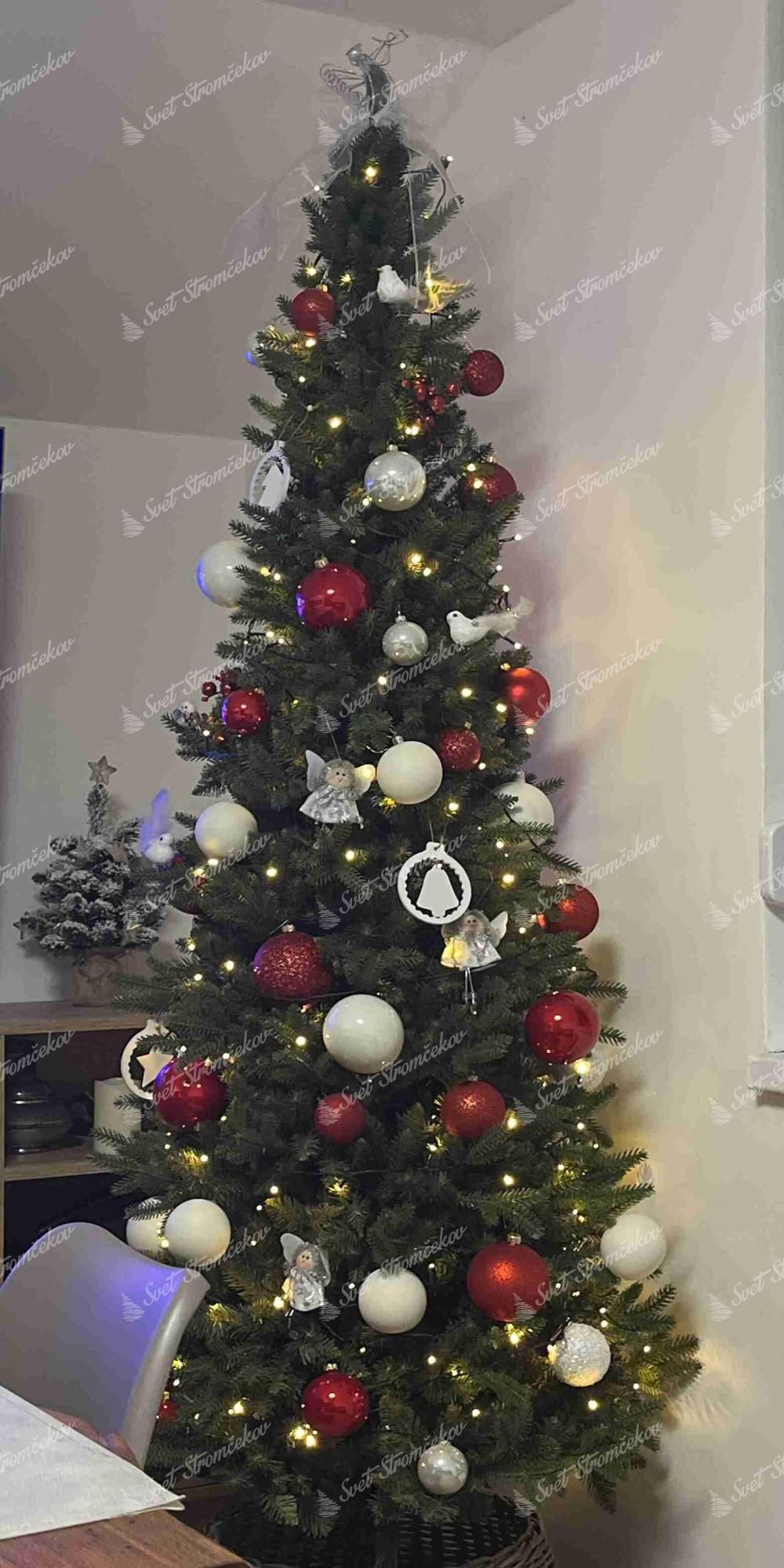 - Stromček je v strede doplnený klasickými zelenými PVC vetvičkami, pre hustý vzhľad