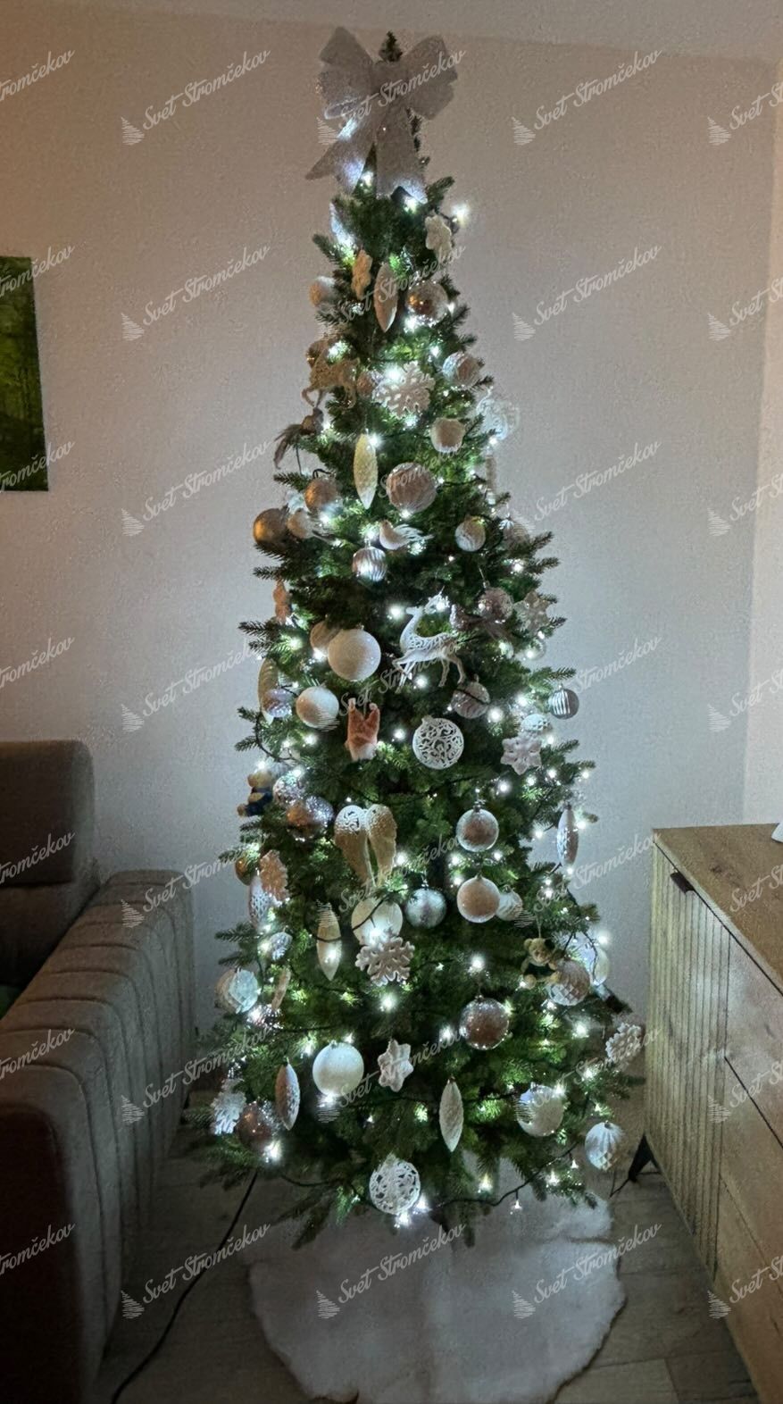 Šírku stromčeka nájdete uvedenú dolu – v parametroch stromčeka.