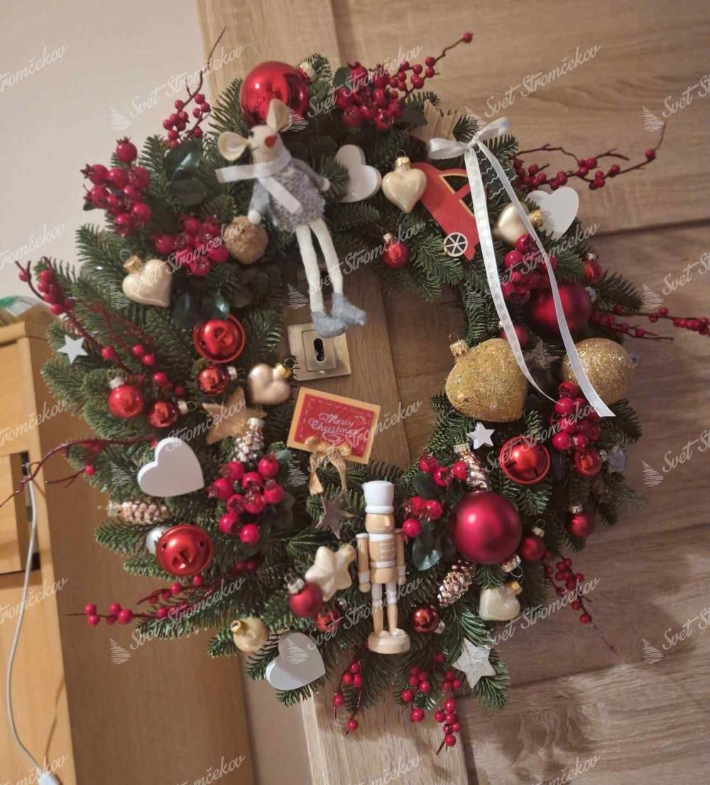 Veniec som ozdobila a zdobil vchodové dvere domu