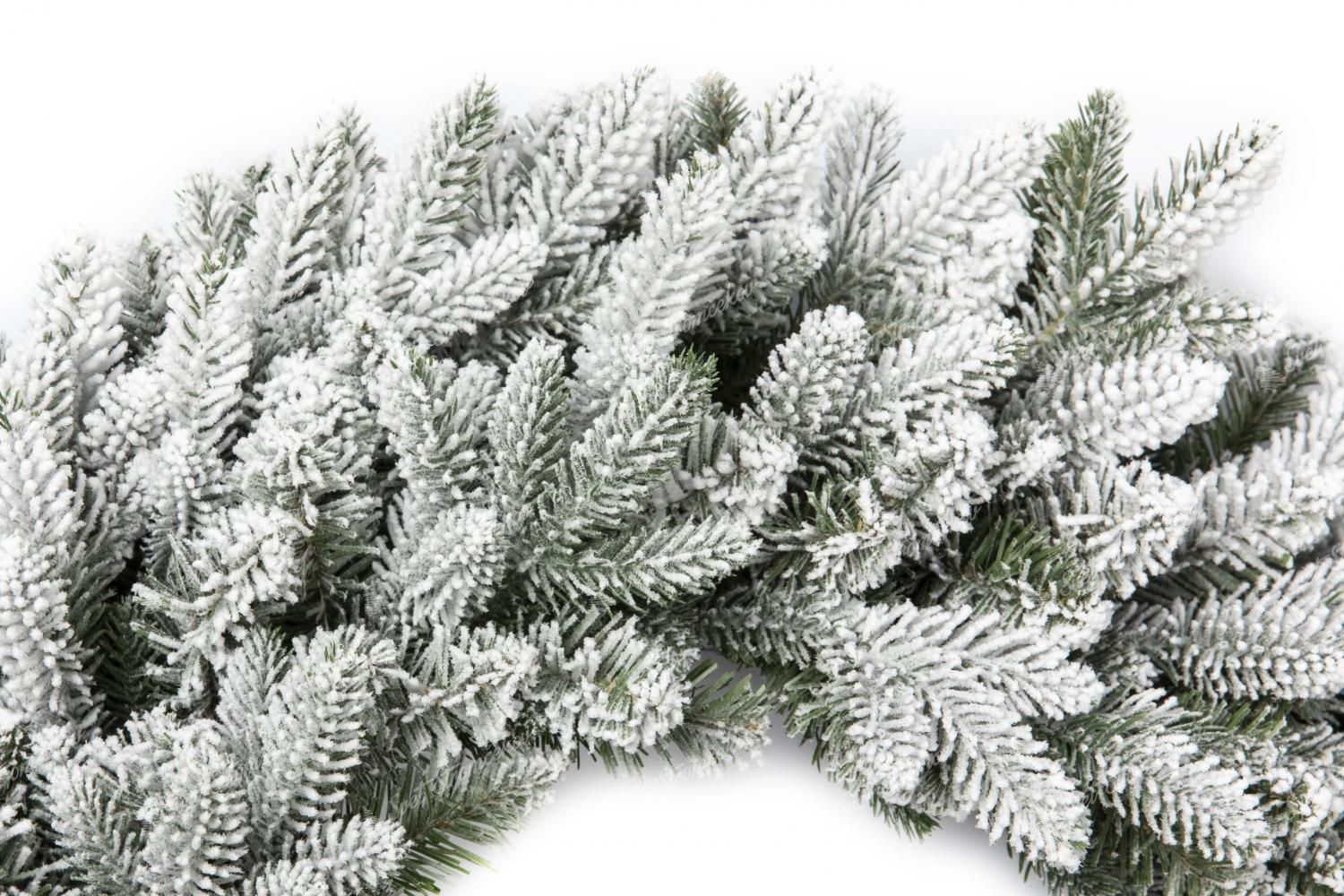 Tento biely vianočný veniec je vhodný ako dekorácia na stôl, dvere a taktiež môže skrášľovať vašu stenu či krb. Veniec je tvorený kombináciou PVC a 3D vetvičiek, ktoré sú v strede prirodzene zelenej farby, zatiaľ čo ich konce sú zasypané snehom, ktorý je na nerozpoznanie od toho pravého. Po dôkladnom rozložení vetvičiek dosahuje priemer 60cm.